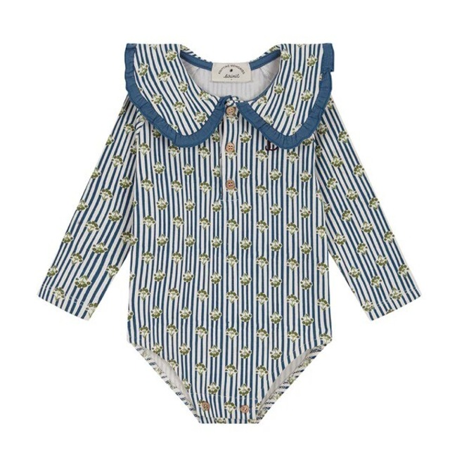 小花柄とブルーのストライプが可愛いロンパース。 特別な日の着用にもおすすめです。 ■size 6-12M 《Birinit Petit》 スペインを拠点とするブランド。 オリジナルの生地を使用しており、トレンドにとらわれない特別なデザインとこだわった品質が魅力。