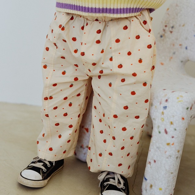 トマト柄パンツ! 珍しいデザインが魅力♡ 大粒トマトではなく小粒なのも可愛いポイント♡ トマトだけでなく小粒のハートも混じっているので 他にはない特別な一着になるはず!! ■size ・1-2y ・2-3y ・3-4y 《SUNDAY SIBLINGS》 オーストラリアのブランド。 兄弟や友人など、他の子供に受け継がれることを 意図して、高品質で耐久性があり、 非常にかわいいアイテムを作成しているのが魅力。