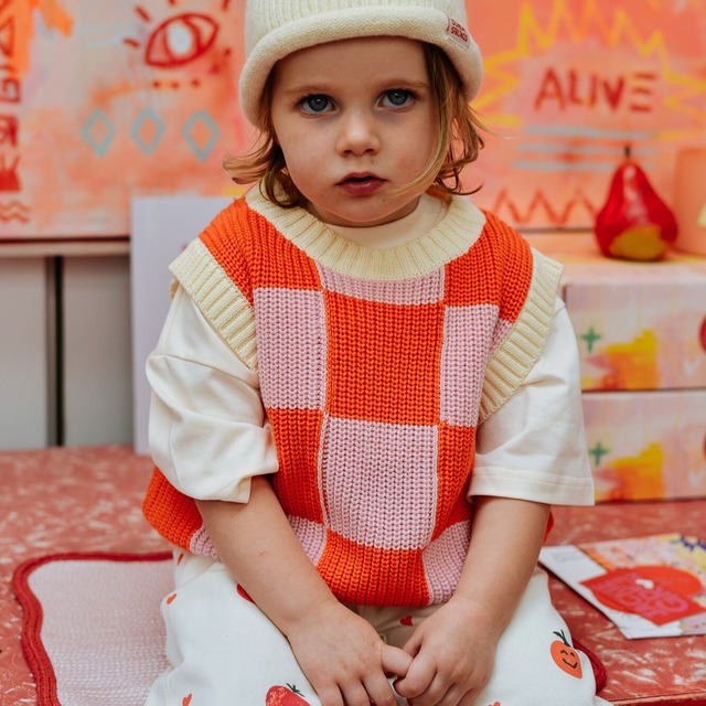 【SUNDAY SIBLINGS】NONNO VEST-PINK+ORANGE CHECK-