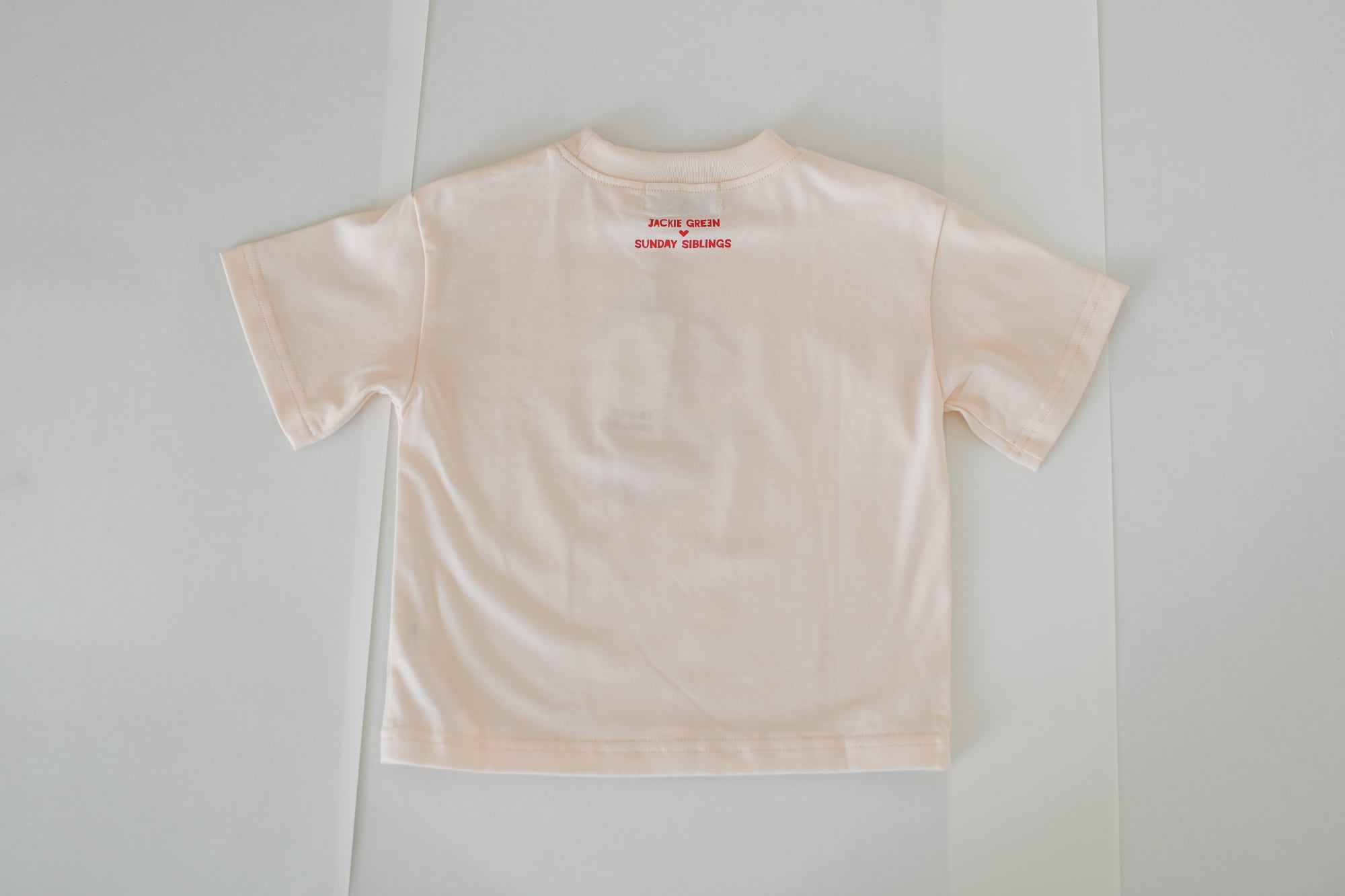 トマトの中のハートがかわいくデザインされた半袖Tシャツ♡