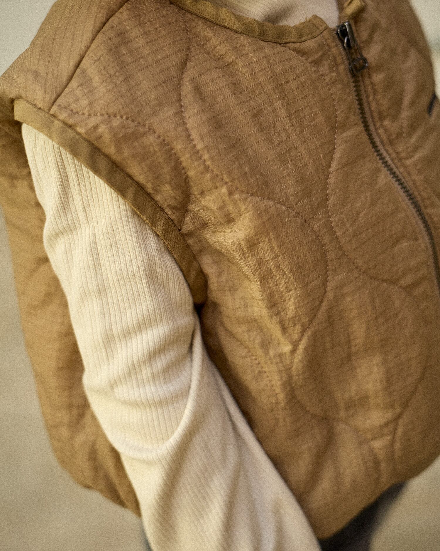 ふんわりとしたクロップドフィットのキルティングベスト。
