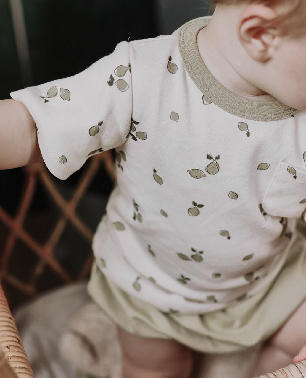 model 身長77cm、体重8.7kg、サイズ6-12m着用
