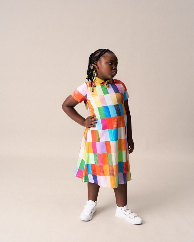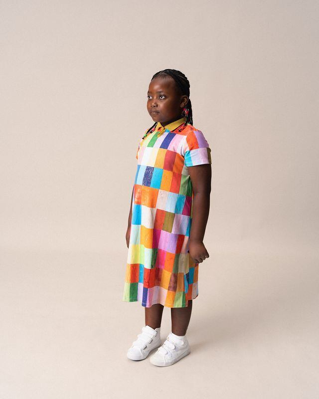 思いつく限りの色を組み合わせた明るく大胆な長方形のデザインで、