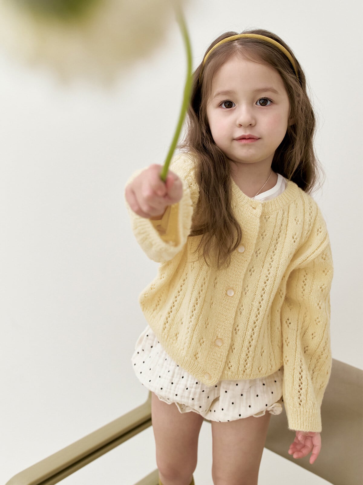 予約商品【 urêve】Soft eyelet cardigan - Soft yellow