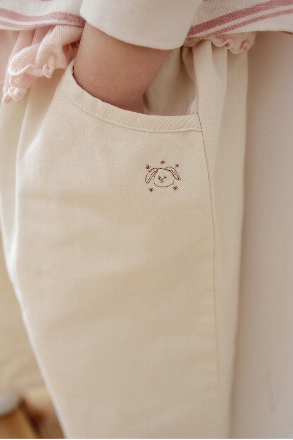 ポケットの下に小さくて可愛い子犬の刺繍がポイント
