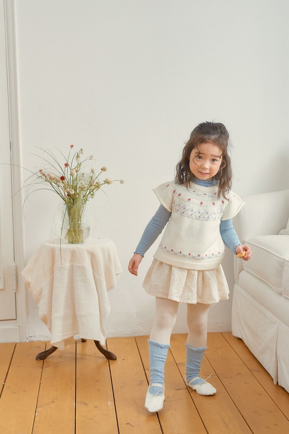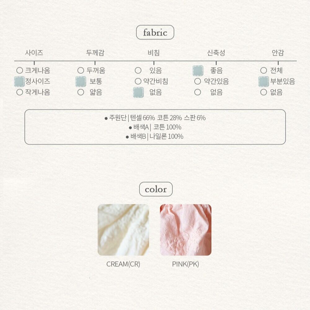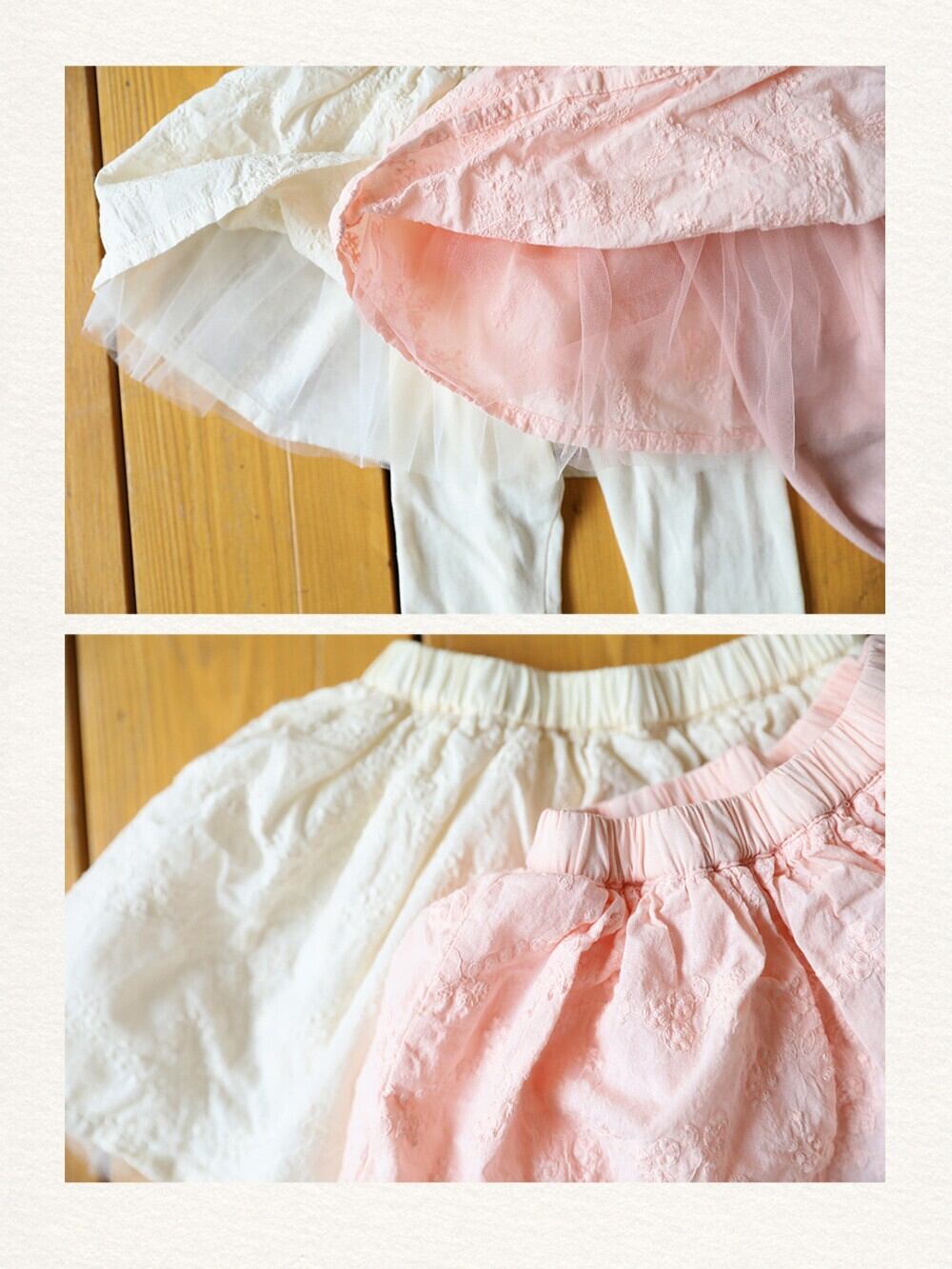 スカートは穏やかで可愛らしい花柄の刺繍生地を使用