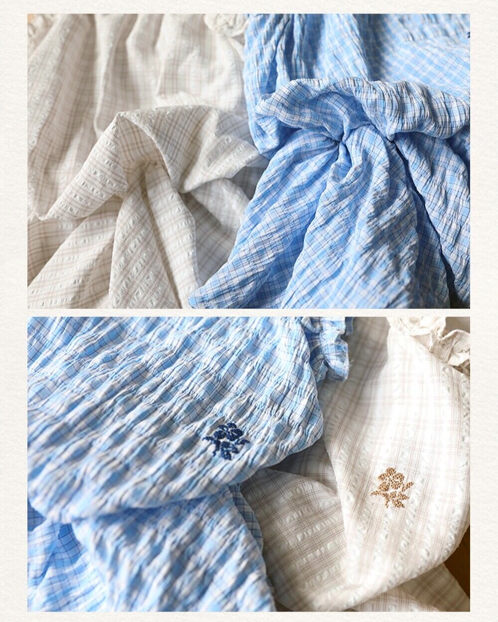 軽くて涼しい着やすい素材のかわいいチェックの生地で作られています