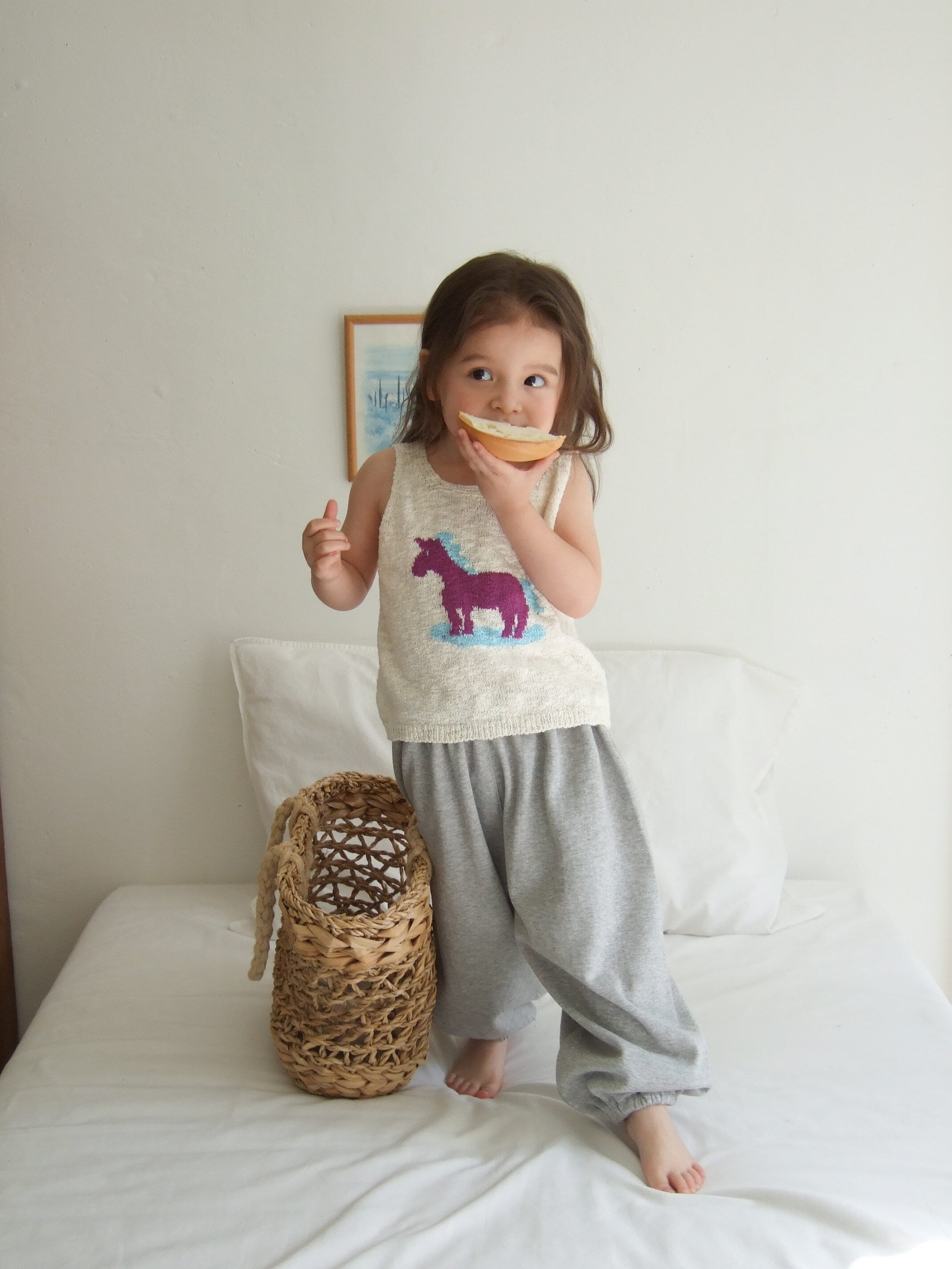 ※ニット技法上、絵の上下部分には線があり、