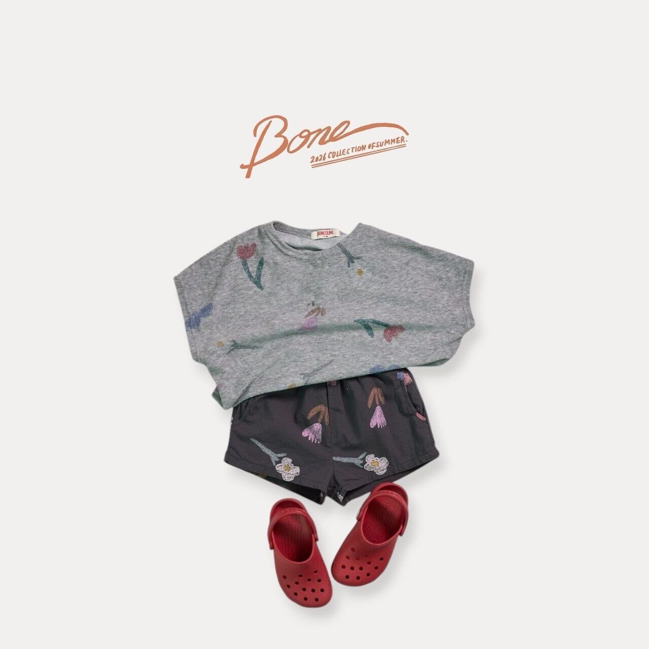 予約商品【 BONEOUNE. 】Crayon flower three-quarter length shorts