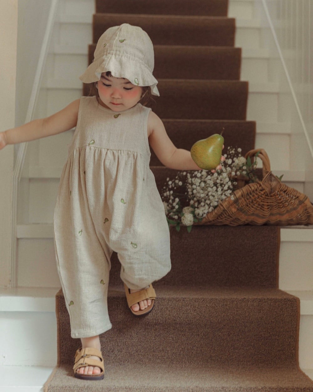梨固有の色彩を刺繍の中に入れたバケットハット