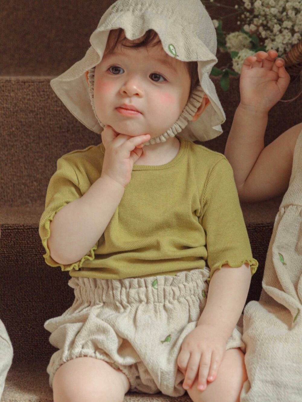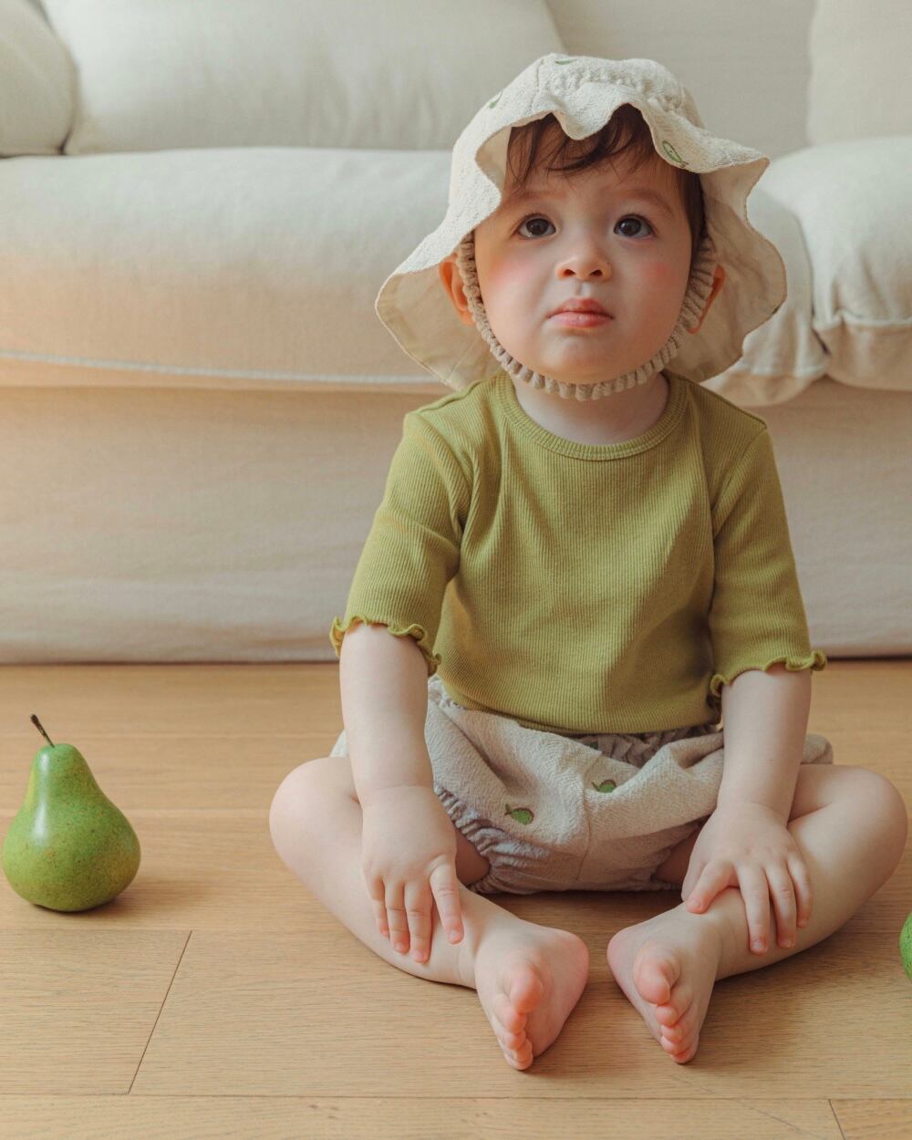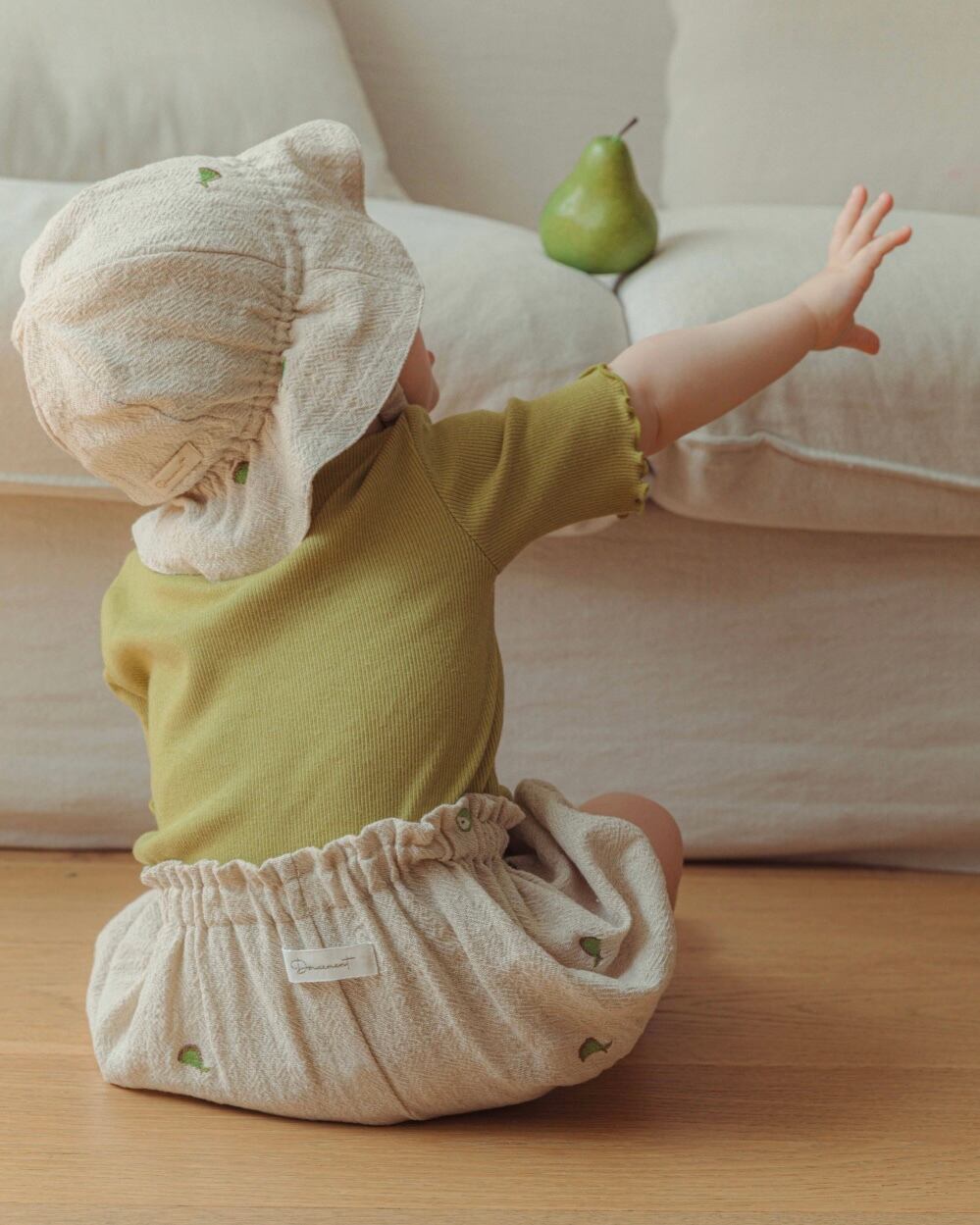 鮮やかな梨色をさりげなく表現したリネンブルマ